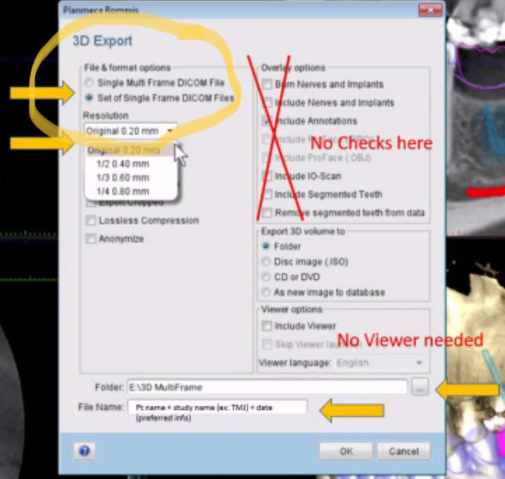 - Select the scan and click the “. . .” button. Select the folder that you just made on the Desktop for the patient and click “OK”.